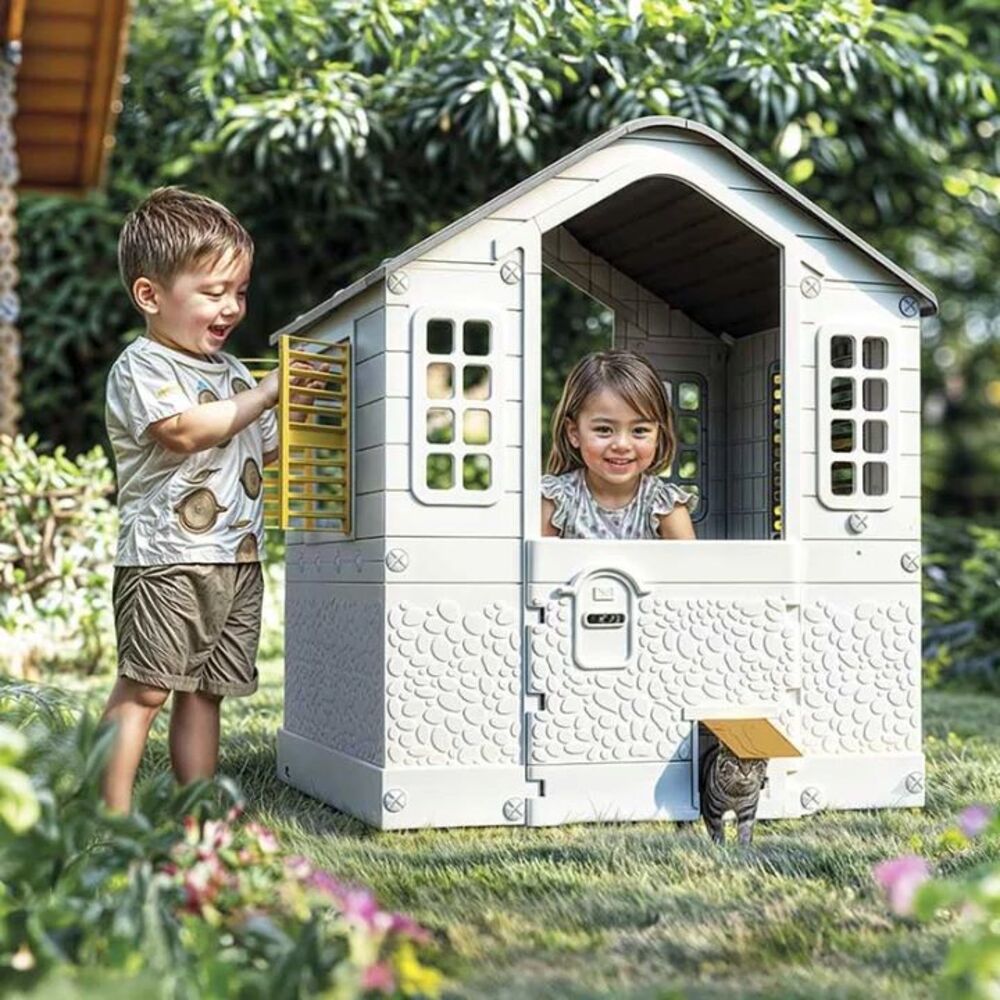 PLAYHOUSE: WHITE, GREEN, YELLOW – The Dolu Cottage My First Playhouse is a delightful retreat designed for young children aged 2 years and older, offering a cozy space for imaginative play both indoors and outdoors.