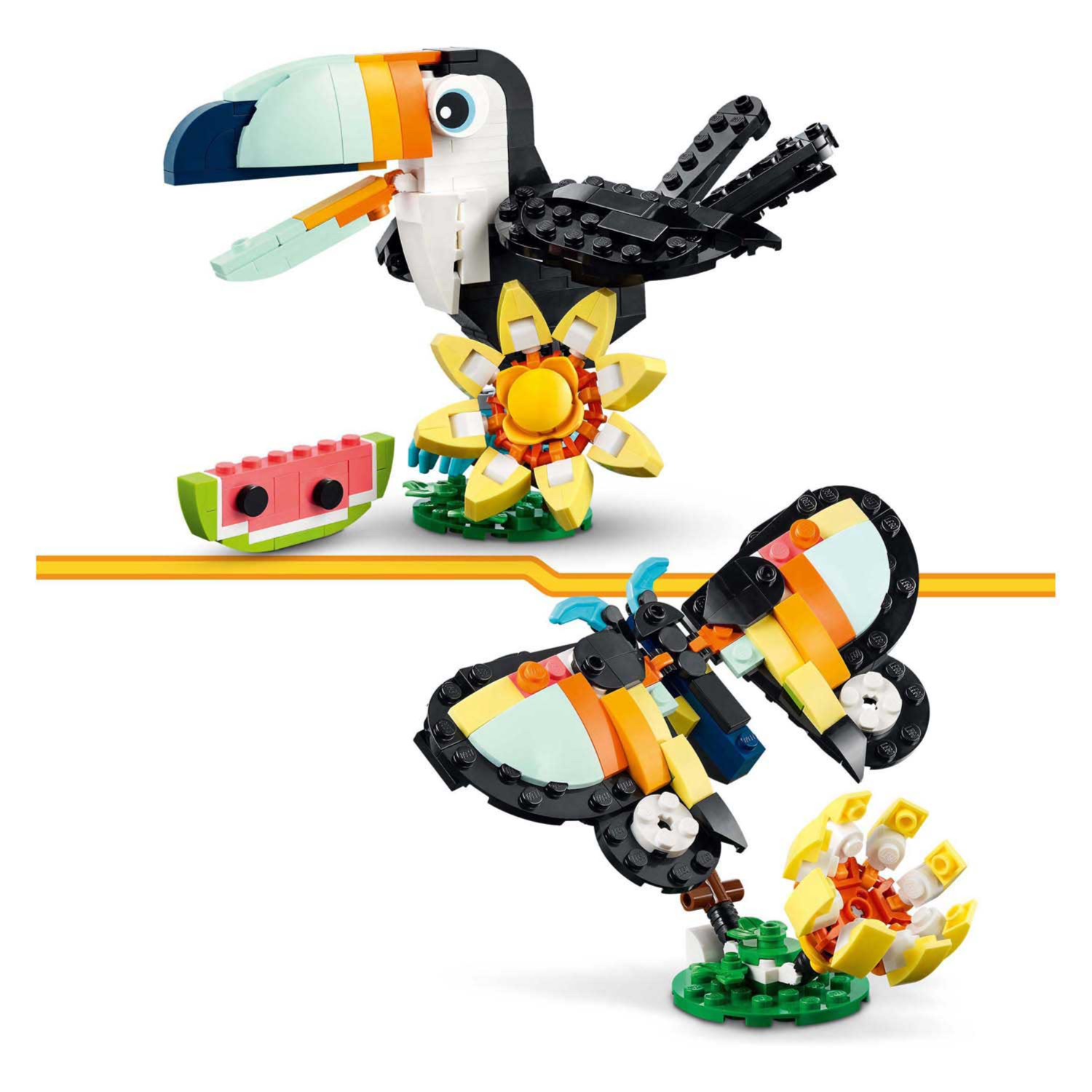 3 tropical animal building options in 1 box – The LEGO® Creator 3in1 Wild Animals: Tropical Toucan figure lets girls and boys aged 7 plus build and rebuild 3 animal playsets using the same bricks