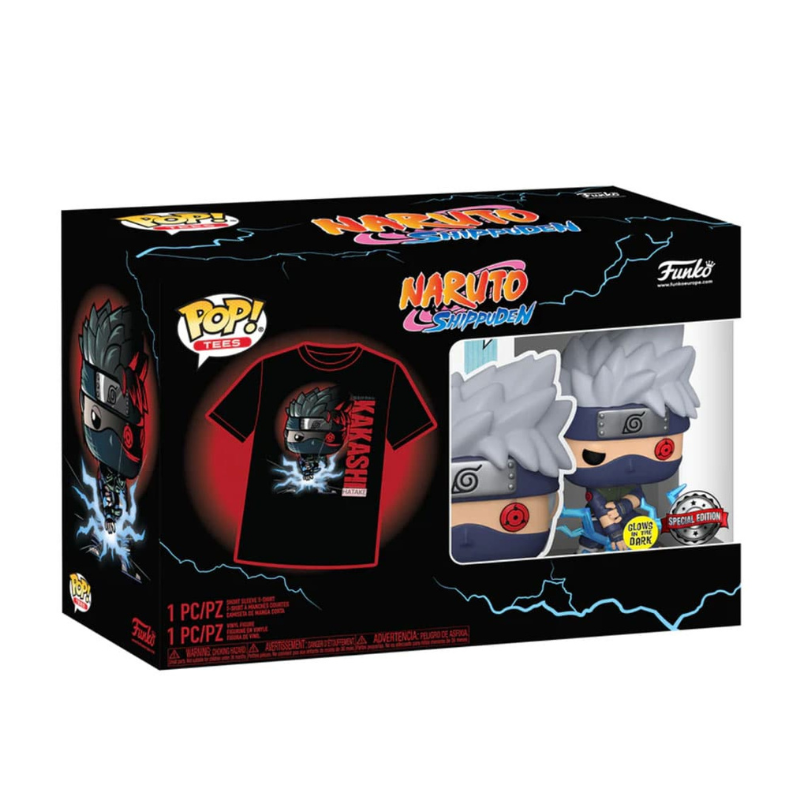The shirt comes in adult unisex size, making it suitable for anyone. But that's not all, the Pop! vinyl figure of Kakashi Hatake is also included, showcasing his signature lightning move and even glows in the dark. Standing at approximately 10 cm tall, this vinyl figure is a great addition to any Funko Pop collection.