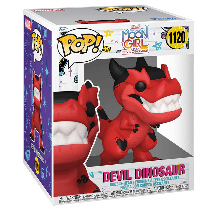 Make way for this larger-than-life creature! Super Pop! Devil Dinosaur is ready to hit the streets with his pal, Moon Girl. Who will he meet up with in your Marvel collection?