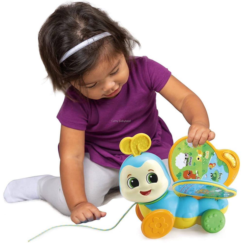 The Pull-Along Butterfly Book is an interactive learning toy that combines a friendly butterfly character with a detachable book. Designed for children 12+ months, it features wheels for pulling along and a built-in book that teaches about butterfly life cycles, colors, and animals.
