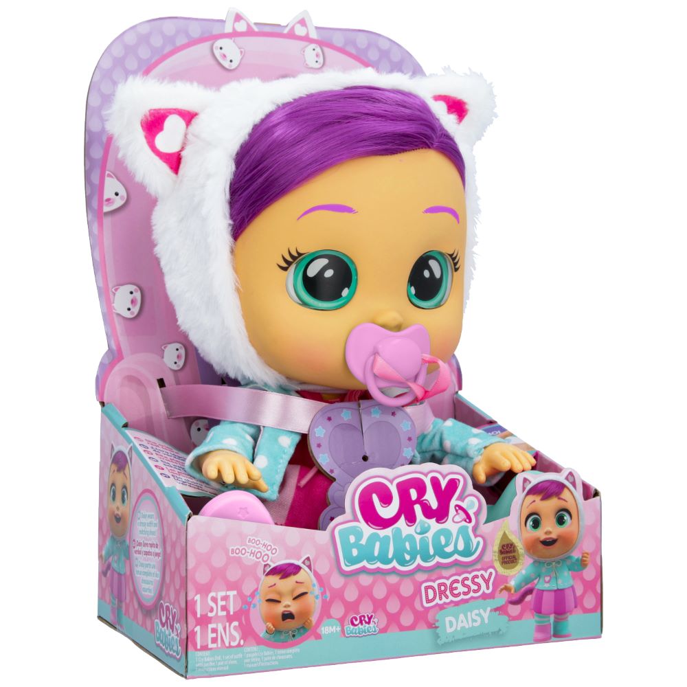 The Cry Babies 12' Baby Doll - Dress Daisy is the perfect addition to any little one's toy collection. This cute doll features big, expressive eyes and comes dressed in an adorable outfit that includes a dress, sweater, hat, socks, and shoes. The included pacifier keeps Daisy quiet, but if you try to take it off, she will start crying in despair. This interactive feature adds an extra level of play and imagination for children. Made by London Toys, this doll is sure to provide hours of fun and entertainment for your child. Get the Cry Babies 12' Baby Doll - Dress Daisy today and watch your child's face light up with joy!