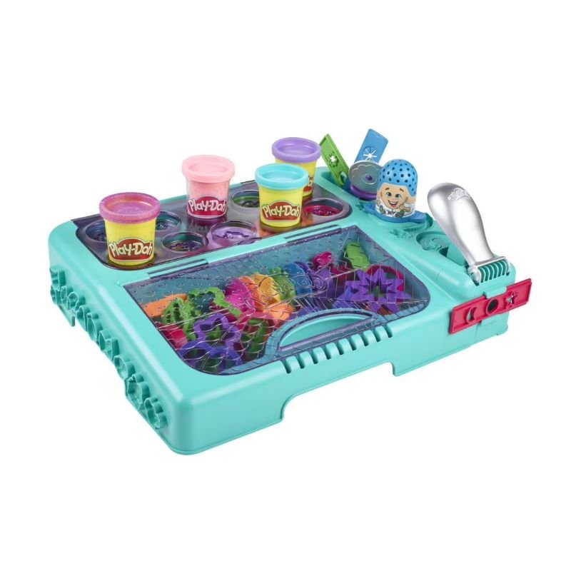 The Play-Doh On The Go Imagine N Store Studio is the perfect toy for kids who love to get creative. This self-contained workstation includes play surfaces, tools, molds, and plenty of storage, making it an all-in-one playspace for kids 3 years and up. The carrying case features 2 built-in classic Play-Doh toys - the Fun Factory tool and the Fuzzy Pumper tool - for even more creative fun. With over 30 play-doh tools, including shape cutters, a roller with cutter attachments, and more, kids will have endless possibilities for imaginative play. The set also comes with 10 colorful 2-ounce Play-Doh cans, including special confetti and sparkle compounds. This arts and crafts toy is not only great for playtime, but also makes a convenient gift for birthdays or holidays. And when playtime is over, cleanup is a breeze with the portable carrying case and ample storage and work surfaces. The set contains wheat and is recommended for kids 3 years and up. Let your child's imagination run wild with the Play-Doh On The Go Imagine N Store Studio.