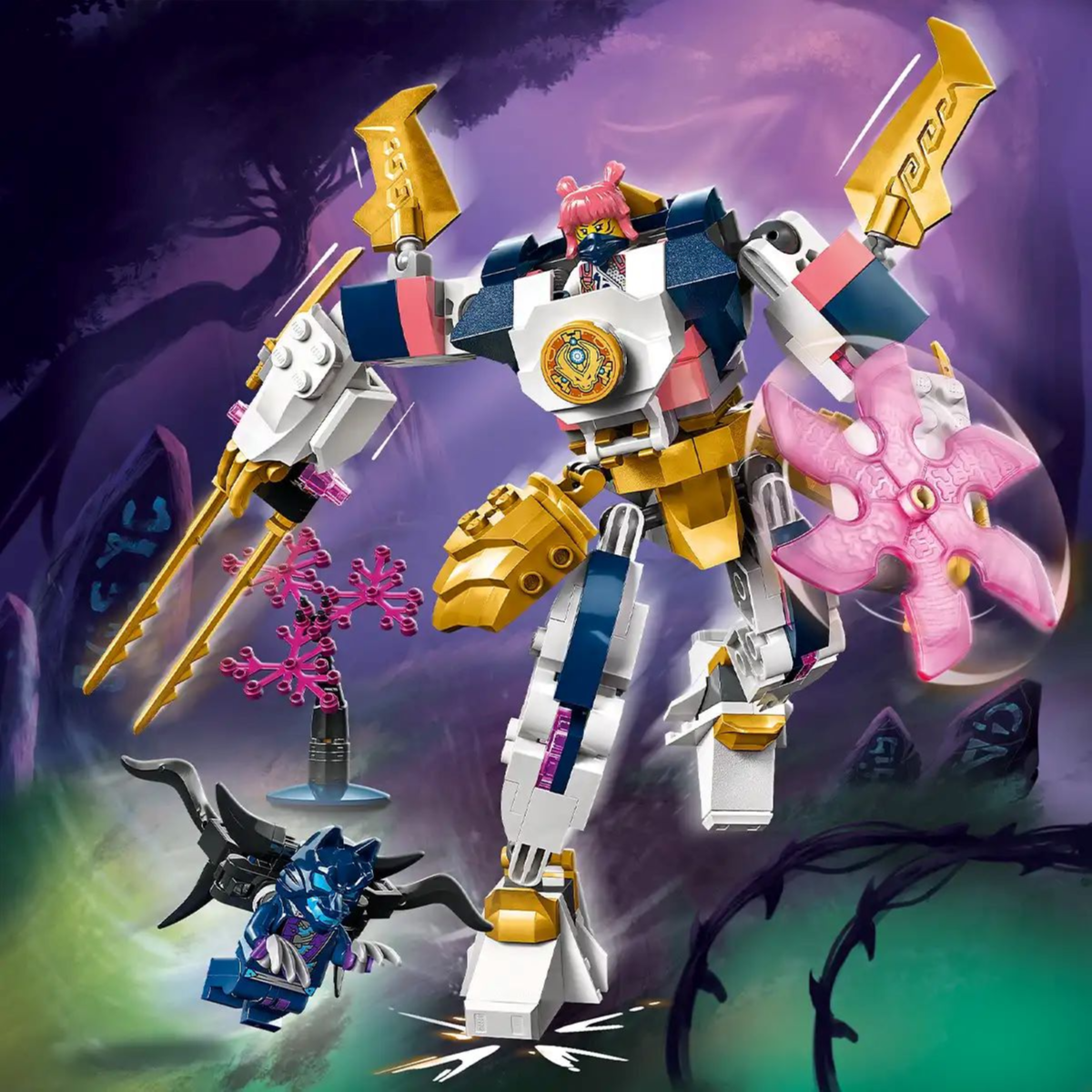 Posable ninja toy – Sora’s mech has a minifigure cockpit, large sword, rotating blade and limbs that can be tilted and twisted into battle stances