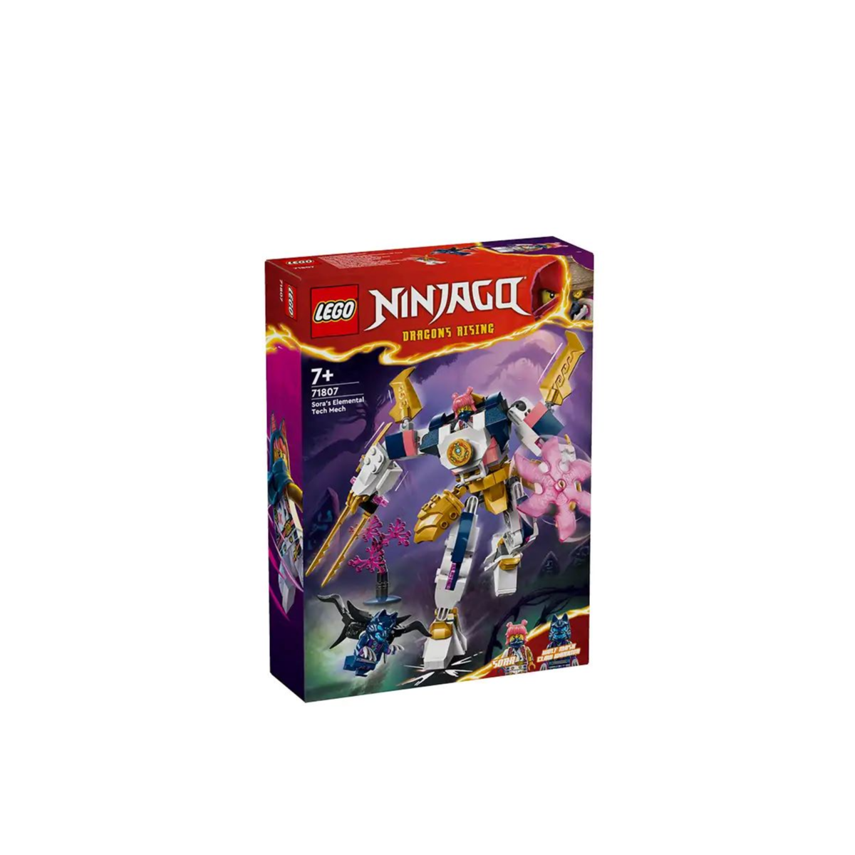 Kids can recreate stories from season 2 of the NINJAGO Dragons Rising TV show with Sora’s Elemental Tech Mech (71807) ninja toy for 7+ year old boys and girls. The cool mech action figure has posable arms and legs that kids can tilt and twist into dramatic battle stances, plus a large sword accessory, a rotating blade and a cockpit to place a LEGO NINJAGO minifigure inside.