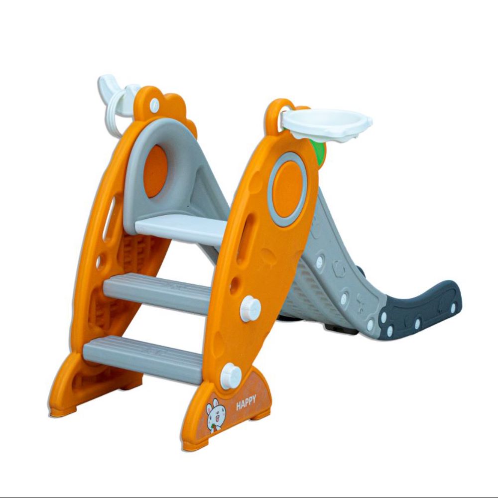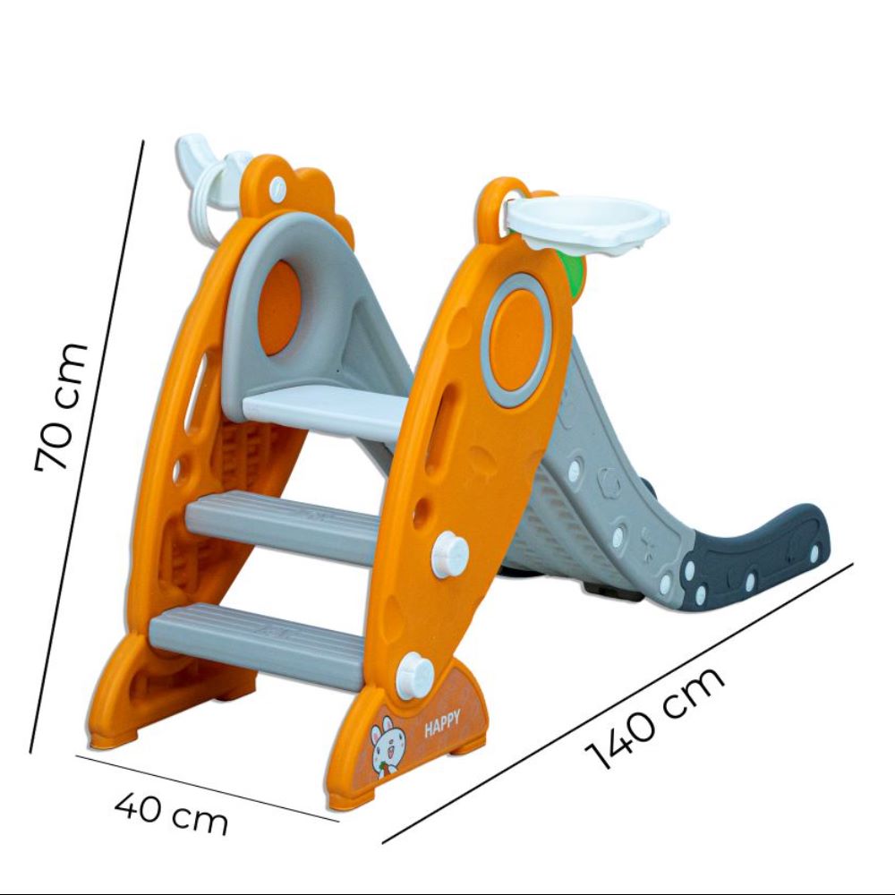 Bring excitement and creativity to your garden with our orange and grey kid's slide. With a built-in basketball hoop, your children will have hours of fun shooting hoops and sliding down. Turn your child's world into a laughter-filled playground of creativity! Our slide for kids isn't just a plaything; it's a safe adventure with a sturdy build and strong support. Let your kids play to their heart's content, knowing they're secure and adding excitement to their growth journey.