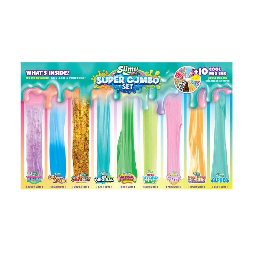Dive into a world of ooey-gooey fun with the Slimy Super Combo Set! Packed with 9 different types of slimy goodness, this set is perfect for hours of sensory play. With 16 pots of ASMR-tastic slime and 10 cool mix-ins, you can mix, stretch, squish, and switch up your slime creations to your heart's content. And with over 1.6 kilograms of slime to explore, the fun never ends! Best of all, it's super safe with no parabens, so you can let your creativity run wild without a worry. Get ready to experience the ultimate slimy adventure!