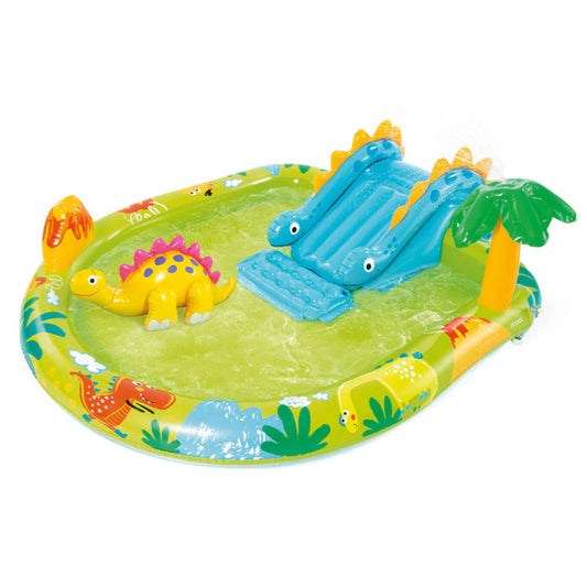 Little Toddler Amusement Park with Kid's Playhouse, Slide, Basketball Hoop, Storage Bins, Mint Green - Off White
