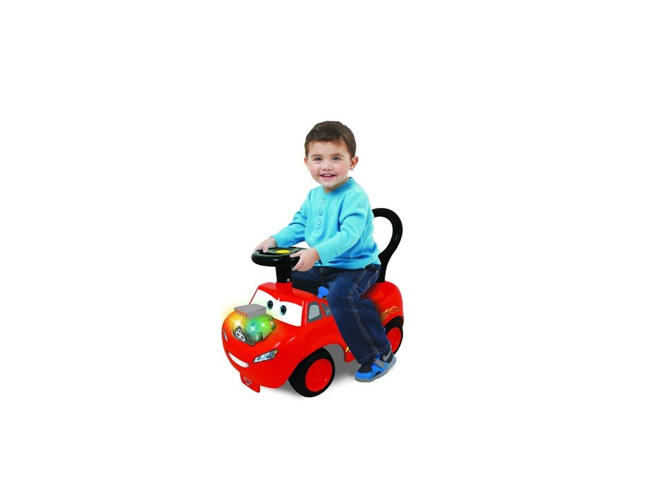 The Disney Cars3 Activity Ride On is the perfect toy for any young fan of the popular movie franchise. This ride on features exciting lights and sounds that bring Lightning McQueen to life. The engine lights up with colorful lights and realistic engine revs, including ignition, accelerating speed, and brakes, add to the fun. Your child can steer the wheel and honk the horn for a realistic driving experience. The ride on requires 2 AA batteries, which are included. Get your child ready to race with the Disney Cars3 Activity Ride On from London Toys.