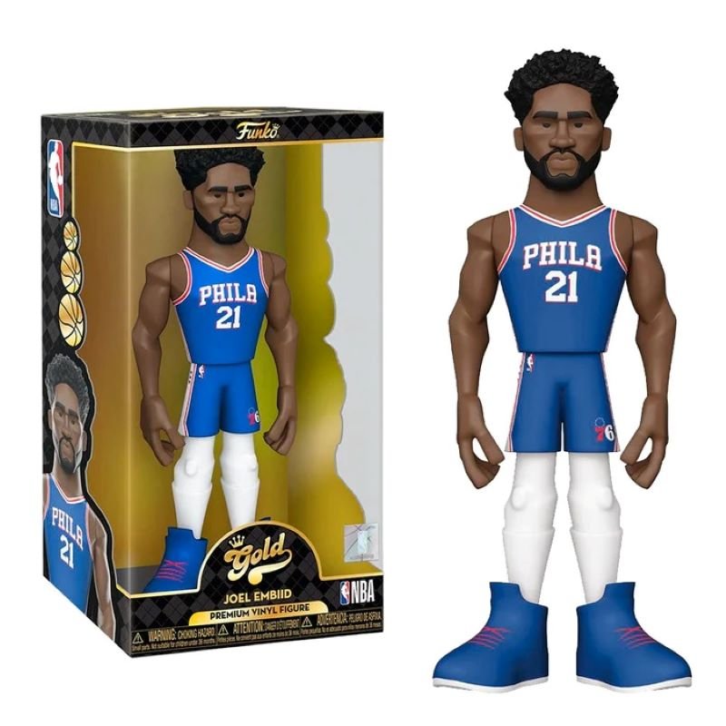 Introducing the Gold 12 Inch NBA Philadelphia Joel Embiid W/chase, the perfect addition to any National Basketball Association collection. This 12-inch-tall collectible from Funko features Joel Embiid dressed in his blue home uniform. With its sleek display-ready box, this figure is easy to stack with other GOLD collectibles. Show your love for the Philadelphia 76ers and commemorate one of the NBA's legendary players with this GOLD edition figure. Don't miss out on the chance to score a slam dunk for your collection. Get your Gold 12 Inch NBA Philadelphia Joel Embiid W/chase today!