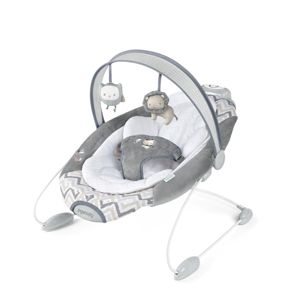 When you need a second set of hands, give your baby a spot to cuddle up in a 2-speed automatic bouncer that’s made to mimic your movements. The Ingenuity SmartBounce Automatic Bouncer offers 30 minutes of continuous automatic bouncing, with settings that range from subtle to more pronounced, so you can adjust the motions to your little one’s preference. The bouncy seat comforts baby with plush fabrics and an extra bolster cushion that can be removed as your baby grows. Help calm your little one with 11 melodies, nature sounds, and white noise. 2 plush toys on the pivoting overhead toy bar help keep baby entertained. The HybriDrive technology means batteries last up to twice as long as traditional bouncers. Whenever you need a second set of hands, the SmartBounce gives your baby a safe and soothing place to sit nearby while you tackle your day.