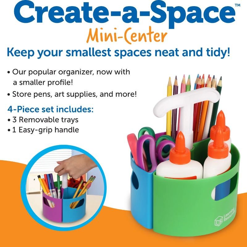 A big-time organizer for smaller spaces! Clean up your classroom, office, maker space, or workspace with the help of the Create-a-Space Mini-Center. Inspired by our popular Create-a-Space Storage Center, this smaller take on the classic design is perfect for the smaller spaces around the home, office, classroom, or maker space—whether on top of a filing cabinet, next to an art caddy, or at the edge of your desk, the Create-a-Space Mini-Center brings order to even the tightest chaotic space.