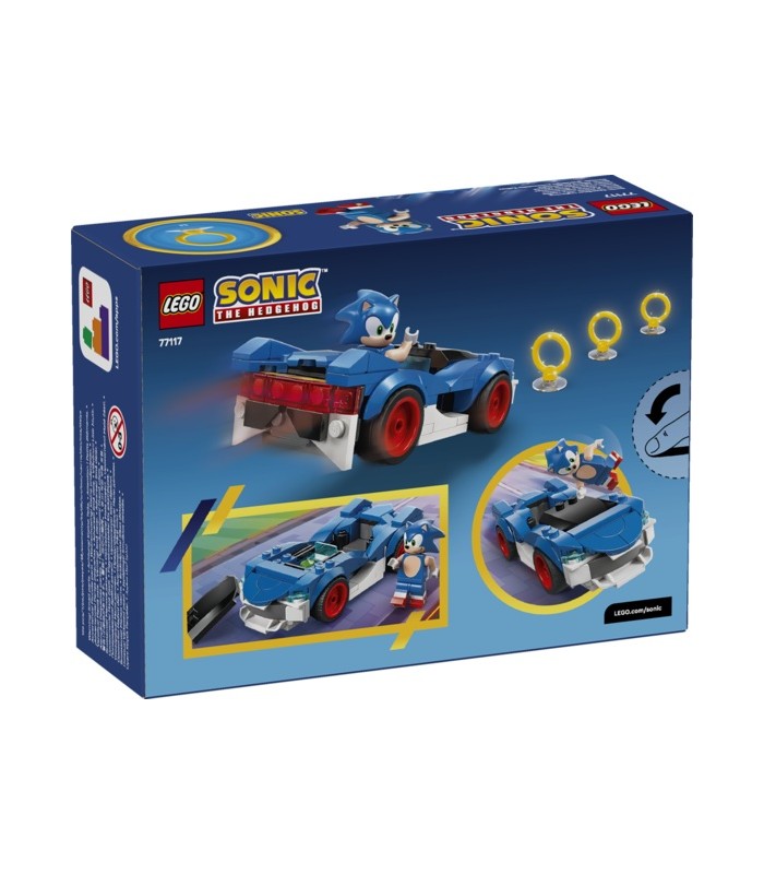 Fast-paced, race car adventures await kids ages 7 and up in this LEGO Sonic the Hedgehog Sonic: Speedster Lightning (77117) building toy set. Based on the Sonic Racing: CrossWorlds console video game, boys, girls and gaming fans can race around and collect the 3 Gold Rings with a Sonic minifigure with mischievous face decoration. The blue-and-white interactive toy vehicle in this LEGO gaming set features wide, red-rimmed tires and an opening hood that reveals a hidden Chaos Emerald gem. Thiscollectible Sonic gaming merch makes a fun birthday or anytime gamer gift. Add it to other LEGO Sonic the Hedgehog playsets in the range (all sold separately) to extend the action and adventures.