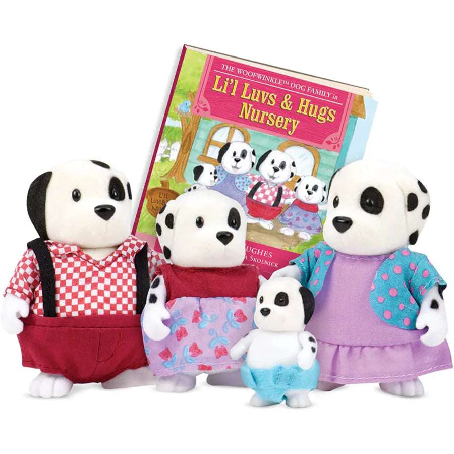 The Lil Woodzeez - Dog Family Figurines are the perfect addition to any child's playtime. This dog playset includes a family of four Li`l Woodzeez figurines, complete with 2 parents, 2 kids, and a family storybook. Let your child's imagination run wild as they create their very own Honeysuckle Hollow universe with these adorable figurines.Not only do these figurines encourage imaginative play, but they also play well with other Li'l Woodzeez toys and most competitor toys. This makes it easy for your child to expand their playtime and create even more fun scenarios with their favorite characters.Suitable for kids aged 3 and over, these dog family figurines are the perfect gift for any young animal lover. So why wait? Add the Lil Woodzeez - Dog Family Figurines to your child's toy collection today and watch as they embark on endless adventures with their new furry friends.