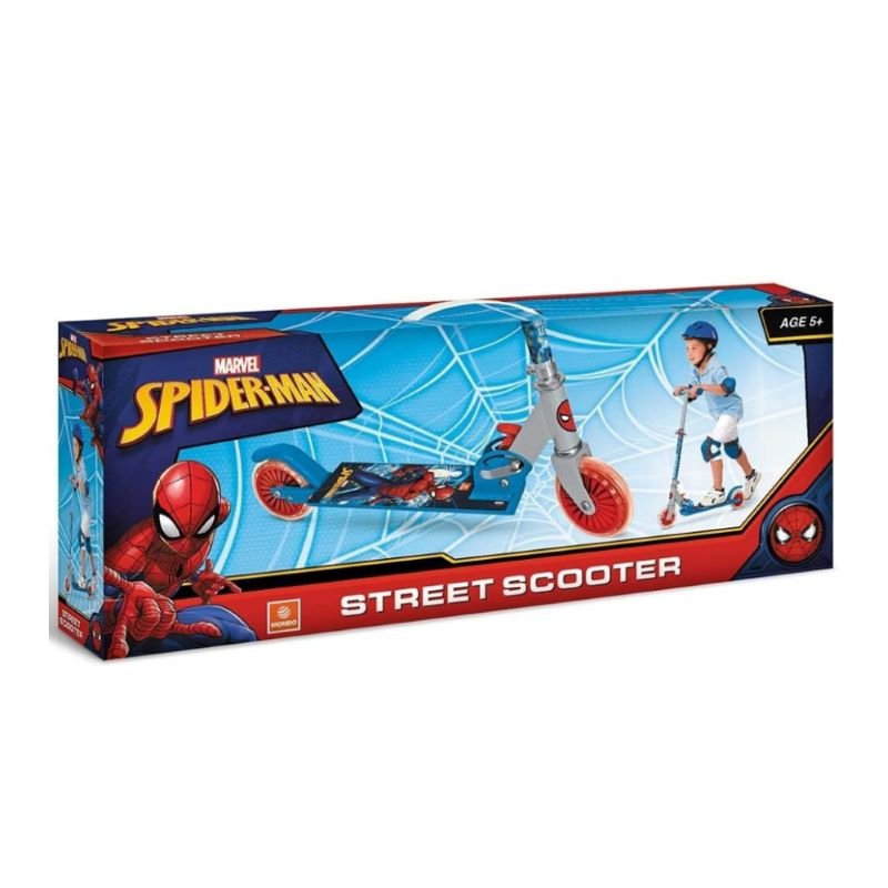 The Mondo Spiderman 2 Wheels Scooter is the perfect choice for experienced scooter riders. This Marvel-themed scooter is sure to catch the eye of any young boy. With an adjustable handlebar height ranging from 59 cm to approximately 64 cm, it can accommodate a variety of heights. The Frozen design on the running board adds a touch of style, while the wide non-slip coating surface ensures a safe and comfortable ride. The foldable handlebar makes it easy to transport and store. The sturdy aluminium frame can support a maximum weight of 50kg, and the rear wheel pedal brake provides added safety. Other features include 120 mm wheels and a plastic footstep with extra grip. Upgrade your child's scooter game with the Mondo Spiderman 2 Wheels Scooter from London Toys.
