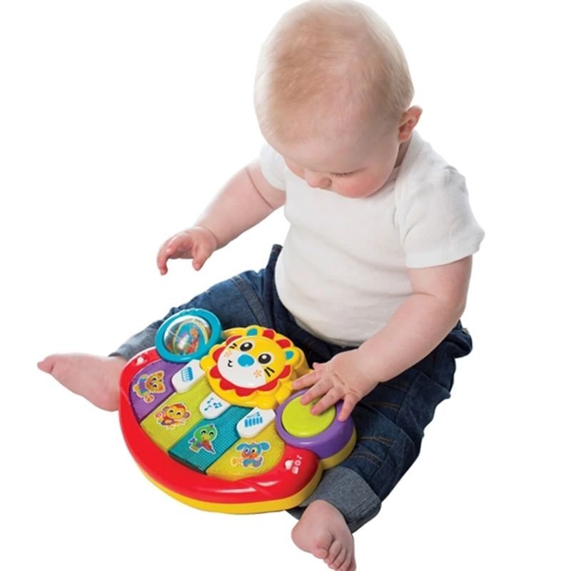 Groove and Move! The Lion Activity kick toy is a musical toy with lots of learning activities. Press the big buttons to play music and watch the lights flash to the beat. Get dizzy with the whirly feature and rolling balls! Features: * 20 Fun Songs to groove to* Twirly, Spinning for enhancing fine motor skills and visual perception* Entertains baby on the go* 2 Colour Ways Available